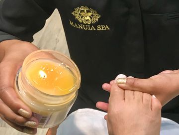 Spa dos Pés com esfoliação, hidratação com parafina, e massagem.