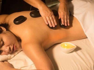 Massagem com Pedras vulcânicas.